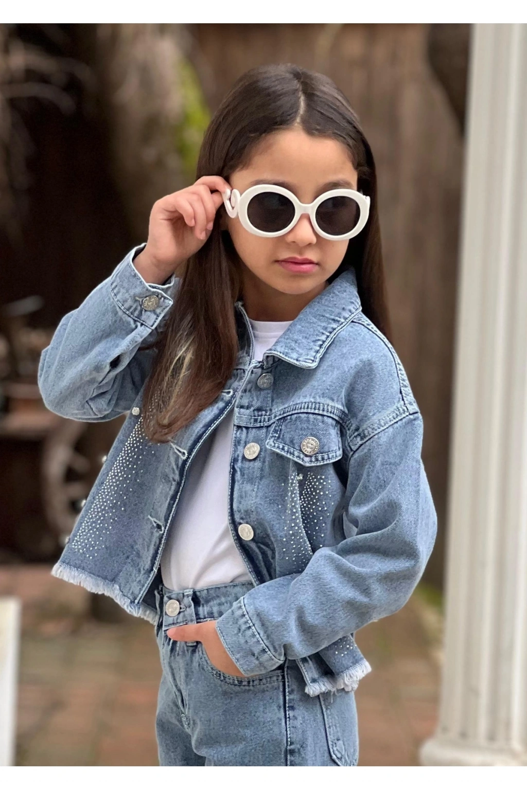 - Kız çocukları için tasarlanmış, şık ve modern bir görünüm sunan taşlı yıldızlı kot ceket.; - Basic koleksiyonun bir parçası olarak, günlük kullanım için idealdir.; - Düz deseniyle kolayca kombinlenebilir ve her türlü kıyafetle uyum sağlar.; - Denim silueti sayesinde rahat bir kullanım sunar ve hareket özgürlüğü sağlar.; - Gabardin dokuma tipi, dayanıklılığı artırarak uzun süreli kullanım imkanı sunar.; - Bayramlık olarak da tercih edilebilecek şık tasarımıyla özel günlerde de şıklığınızı tamamlar.;