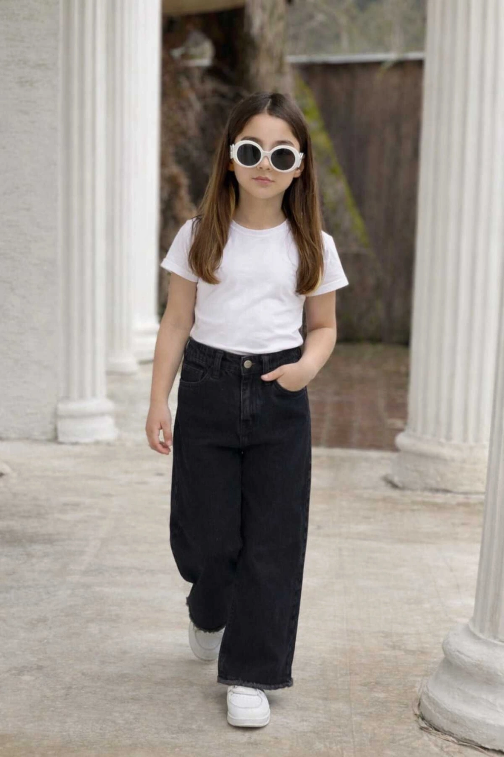 KIZ ÇOCUK ESKİTME BOL PAÇA SİYAH KOT PANTOLON (JEANS-DENİM)-BAYRAMLIK