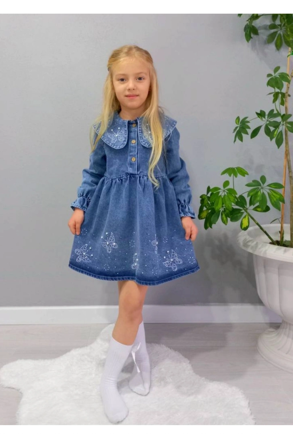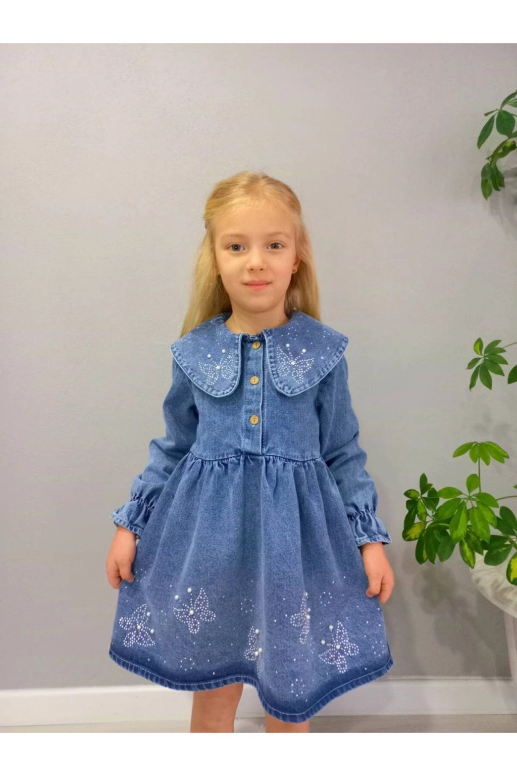 - Fırfır kol detaylarıyla şık ve hareketli bir görünüm sunar.; - Orta kalınlıkta denim kumaşı, mevsim geçişlerinde ideal konfor sağlar.; - Günlük kullanıma uygun tasarımıyla her ortamda rahatlıkla tercih edilebilir.; - Trock / Taş baskı tekniği ile süslenmiş detaylar, elbiseye modern bir dokunuş katar.; - Cepsiz tasarımı sayesinde sade ve şık bir siluet oluşturur.; - Cool & Comfort persona'ya hitap eden rahat kesimi ile gün boyu konfor sunar.; - Bebe yaka detayı ile feminen ve zarif bir görünüm sağlar.; - Astarsız yapısı hafifliğiyle hareket özgürlüğü tanır.; - Kemersiz tasarımı, elbisenin doğal akışını vurgular.; - Denim materyali dayanıklılığı ve şıklığı bir arada sunar.; - Tüm sezonlar için uygun olan bu elbise, yılın her zamanı giyilebilir.; - Tek parça olarak gelen paket içeriği pratik kullanım imkanı sağlar.; - Yıkama talimatları hakkında bilgi verilmediği için bakım kolaylığı sunar.; - Materyal bileşeni belirtilmediği için farklı cilt tiplerine uygun olabilir.; - Basic koleksiyonun bir parçası olarak zamansız bir stil sunar.; - Taş baskı detayları ile göz alıcı bir görünüm kazandırır.; - Sürdürülebilirlik detayına sahip olması çevre dostu bir tercih yapmanızı sağlar.; - Fermuarlı kapama şekli kolay giyilip çıkartılmasını sağlar.; - Dokulu dokuma tipi elbiseye zengin bir doku katar.; - Düz deseni sayesinde farklı aksesuarlarla kolayca kombinlenebilir.; - İç göstermeyen kumaşı sayesinde rahatlık ve güven sağlar.; - Kloş silueti ile feminen ve dinamik bir duruş sergiler.; - Kadın / Kız çocukları için özel olarak tasarlanmıştır.; - Uzun kol boyu soğuk havalarda ekstra koruma sunar.; - Normal boy kesimi ile farklı vücut tiplerine uyum sağlar.; - Türkiye'de üretilmiş olması yerel üretim desteği sunar.;