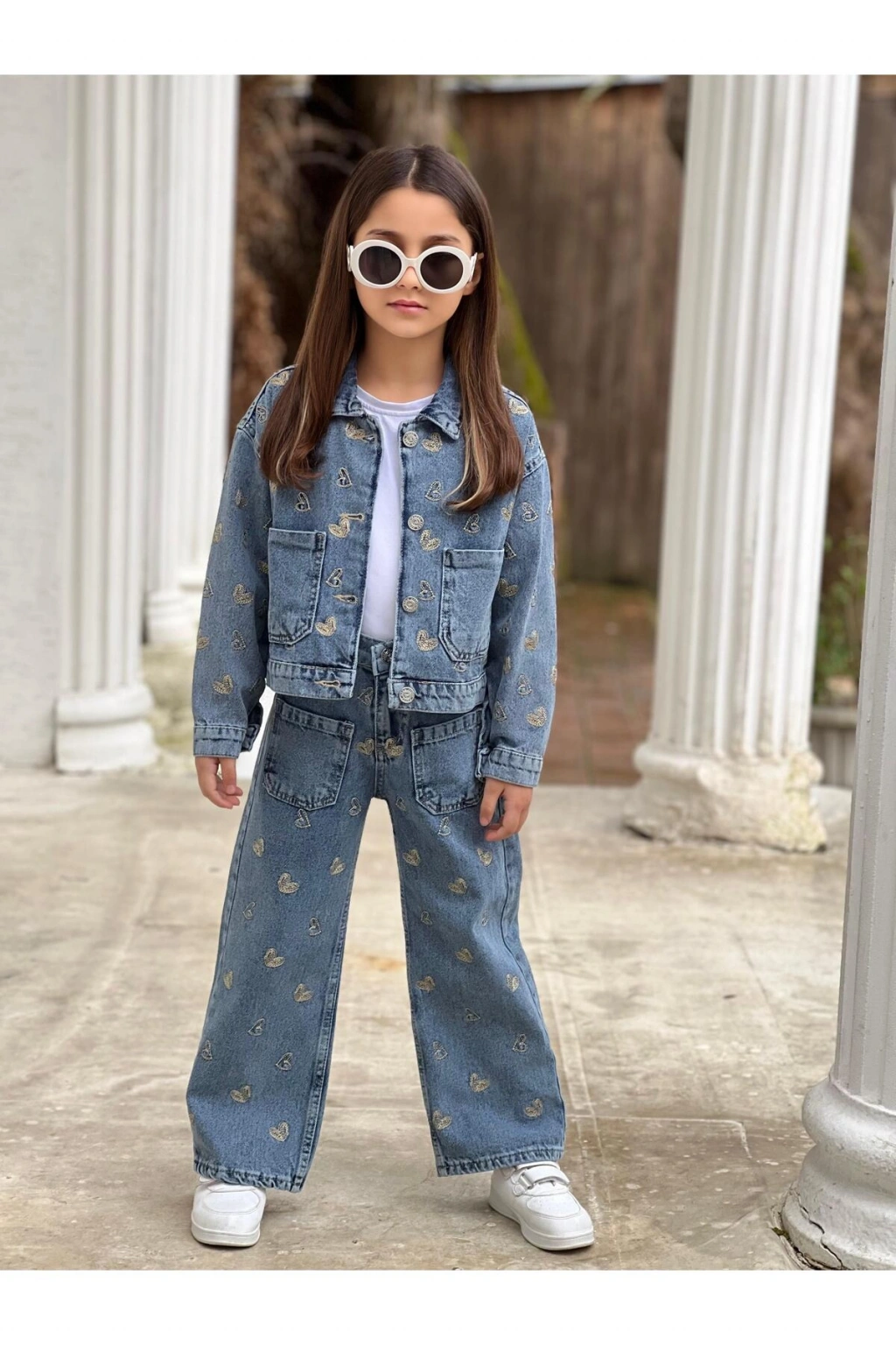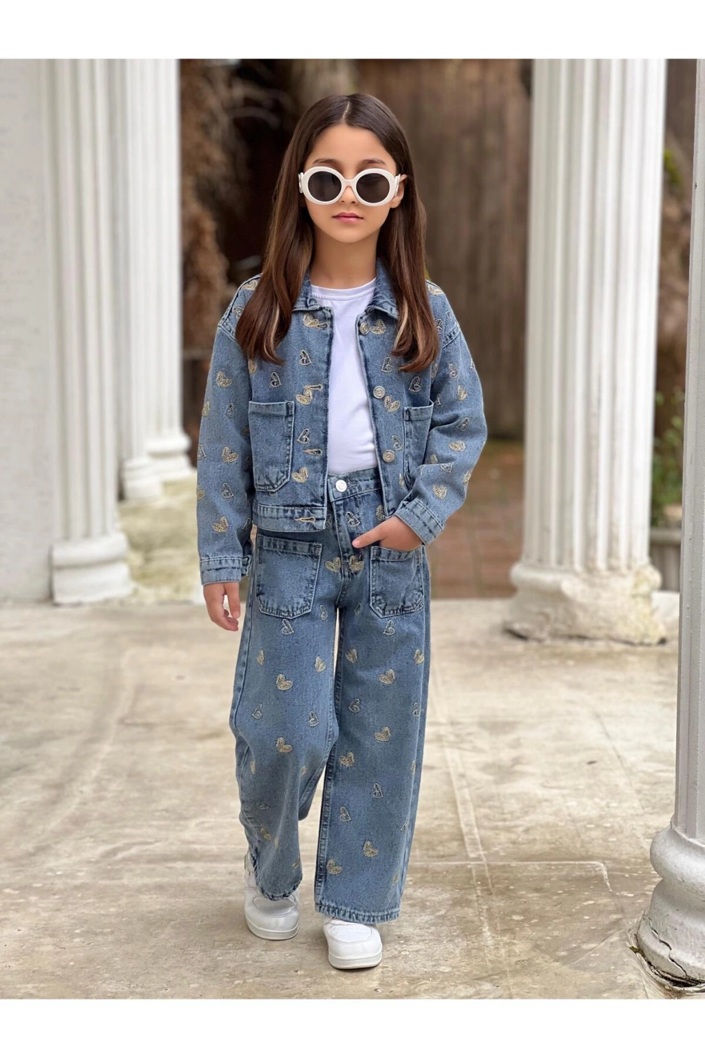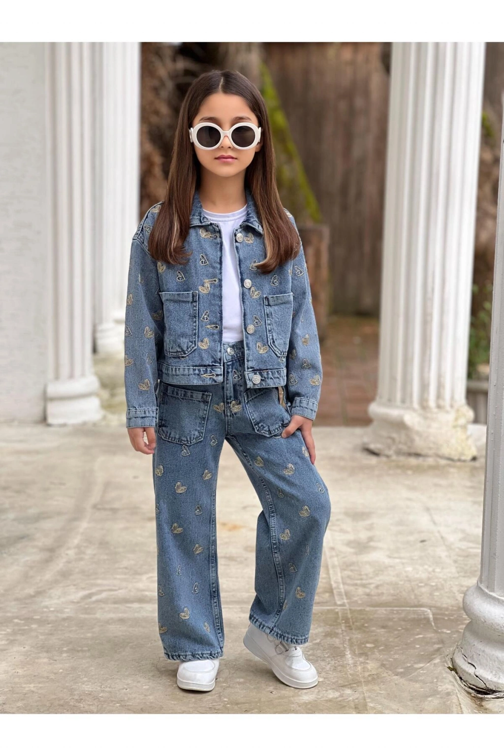 - Tüm sezonlarda rahatlıkla kullanılabilecek, her bayramlık için ideal bir seçim.; - Astarsız yapısıyla hafif ve konforlu bir kullanım sunar.; - Dokulu kumaşı ile şık bir görünüm sağlar ve dayanıklılığı artırır.; - Geniş paça tasarımı ile hareket özgürlüğü sunarken, modern bir stil oluşturur.; - Ceket ve pantolon olmak üzere iki parçadan oluşan takım, kombin kolaylığı sağlar.; - Standart kol tipi ile günlük kullanıma uygun rahatlık sunar.; - Çift cepli tasarımı sayesinde pratik bir kullanım imkanı tanır.; - Kemerli bel detayı ile vücut hatlarını zarifçe vurgular ve şıklığı artırır.; - Normal bel kesimi, gün boyu rahat bir oturuş sağlar.; - Sürdürülebilirlik detayına sahip olması, çevre dostu bir tercih yapmanızı sağlar.; - Basic koleksiyonun sadeliğiyle her ortama uyum sağlar.; - Regular silueti ile rahat bir kullanım sunarken, vücut hatlarını bozmadan şık görünür.; - Orta kalınlıkta denim kumaşı, mevsim geçişlerinde ideal konforu sunar.; - Full düğme kapama şekliyle kolay giyilip çıkartılabilir ve şık bir görünüm kazandırır.; - Parıltılı taş detayları ile dikkat çekici bir stil oluşturur.; - Trock / Taş baskı tekniği ile uzun süreli kullanım için dayanıklılık sağlar.; - Beli lastikli yapısı sayesinde rahat bir oturuş ve kolay kullanım sunar.; - Uzun kollu tasarımı ile serin havalarda bile sıcak tutar.; - Cool & Comfort persona'sına uygun olarak hem rahat hem de stil sahibi bir görünüm sunar.; - Tekli paket içeriği ile pratik bir alışveriş deneyimi yaşatır.; - Ceket yakası ile klasik ceket stilini modern bir dokunuşla buluşturur.; - Taşlı deseniyle göz alıcı bir görünüm kazandırır.; - Regular kalıbı sayesinde her vücut tipine uyum sağlar.; - Normal boy kesimi ile dengeli bir siluet oluşturur.; - Çocuk yaş grubuna özel olarak tasarlanmıştır.; - Türkiye menşeli olmasıyla yerel üretim desteği sunar.; - Kadın / Kız cinsiyetine özel olarak tasarlanmıştır.;
