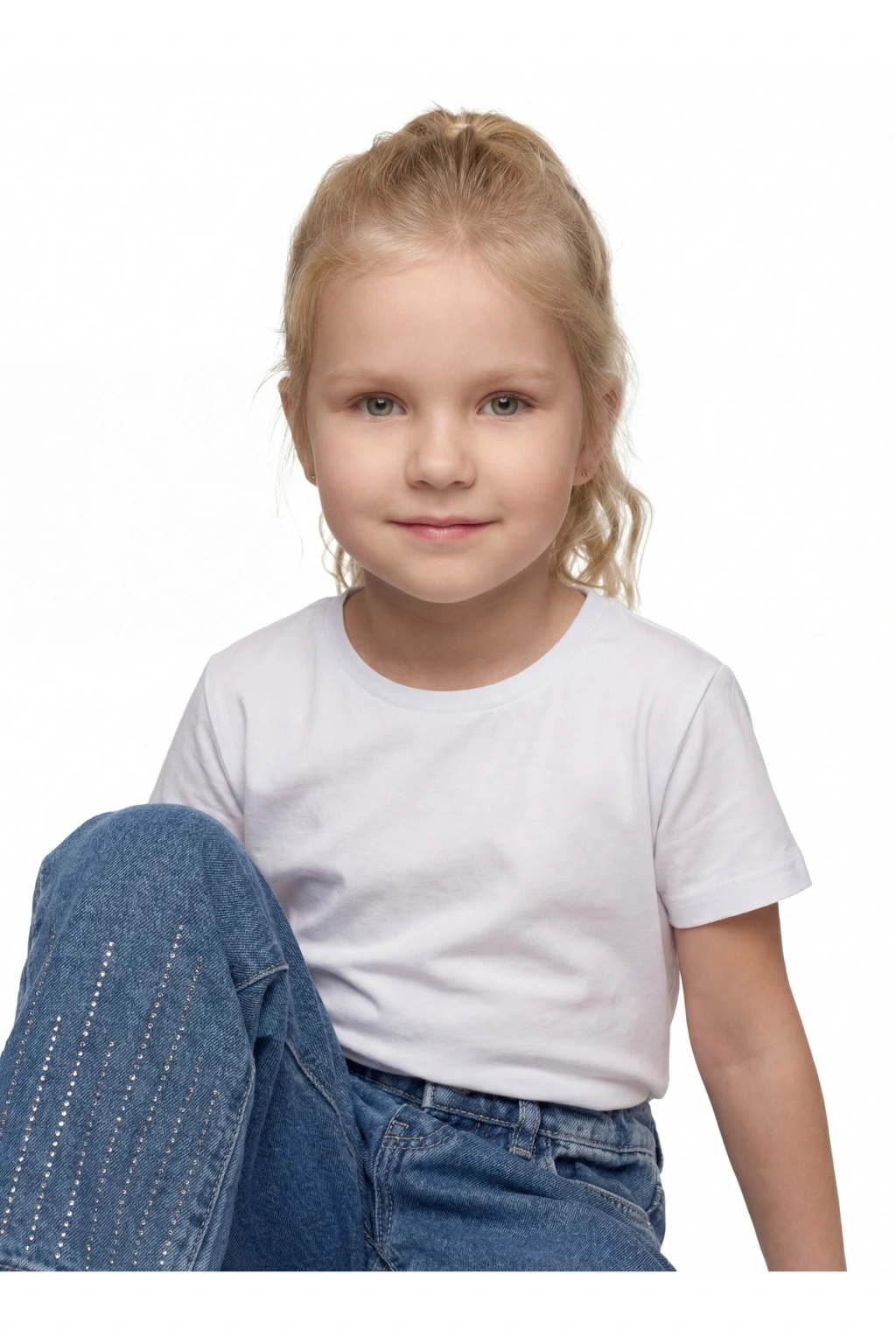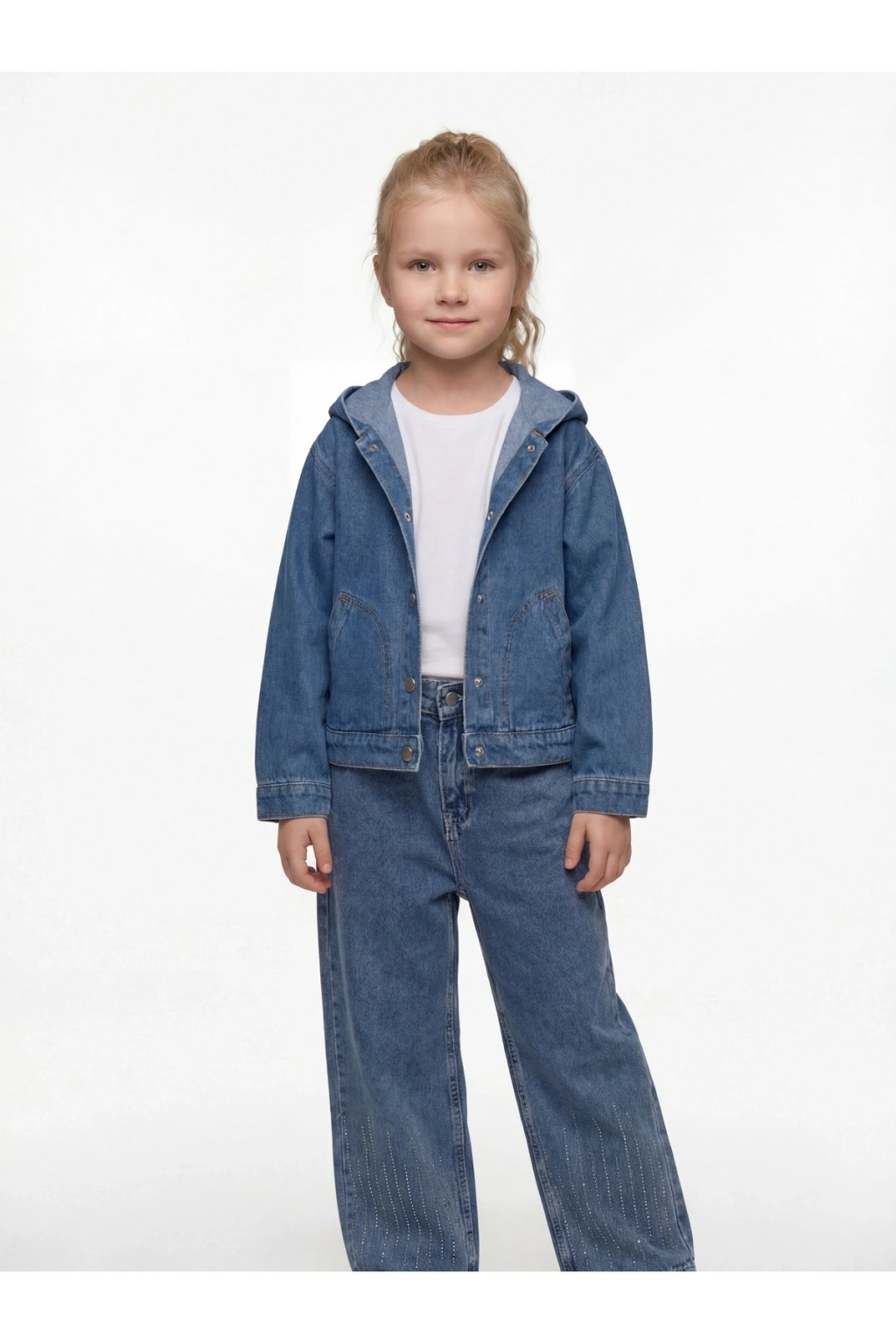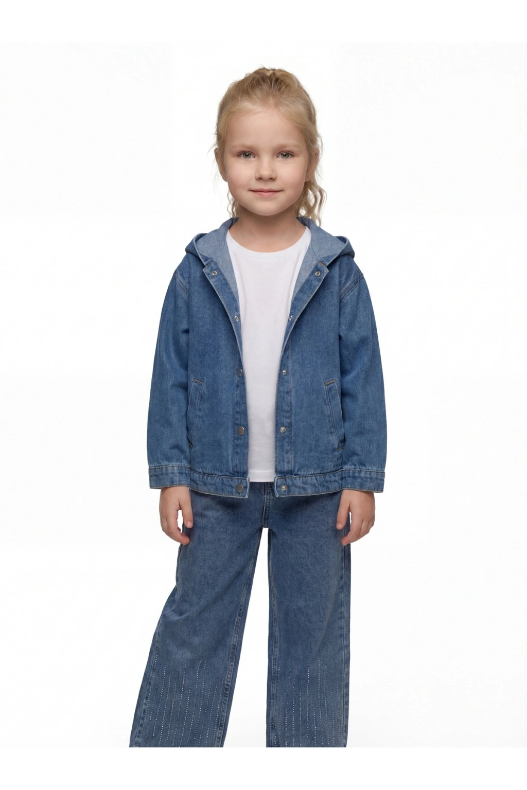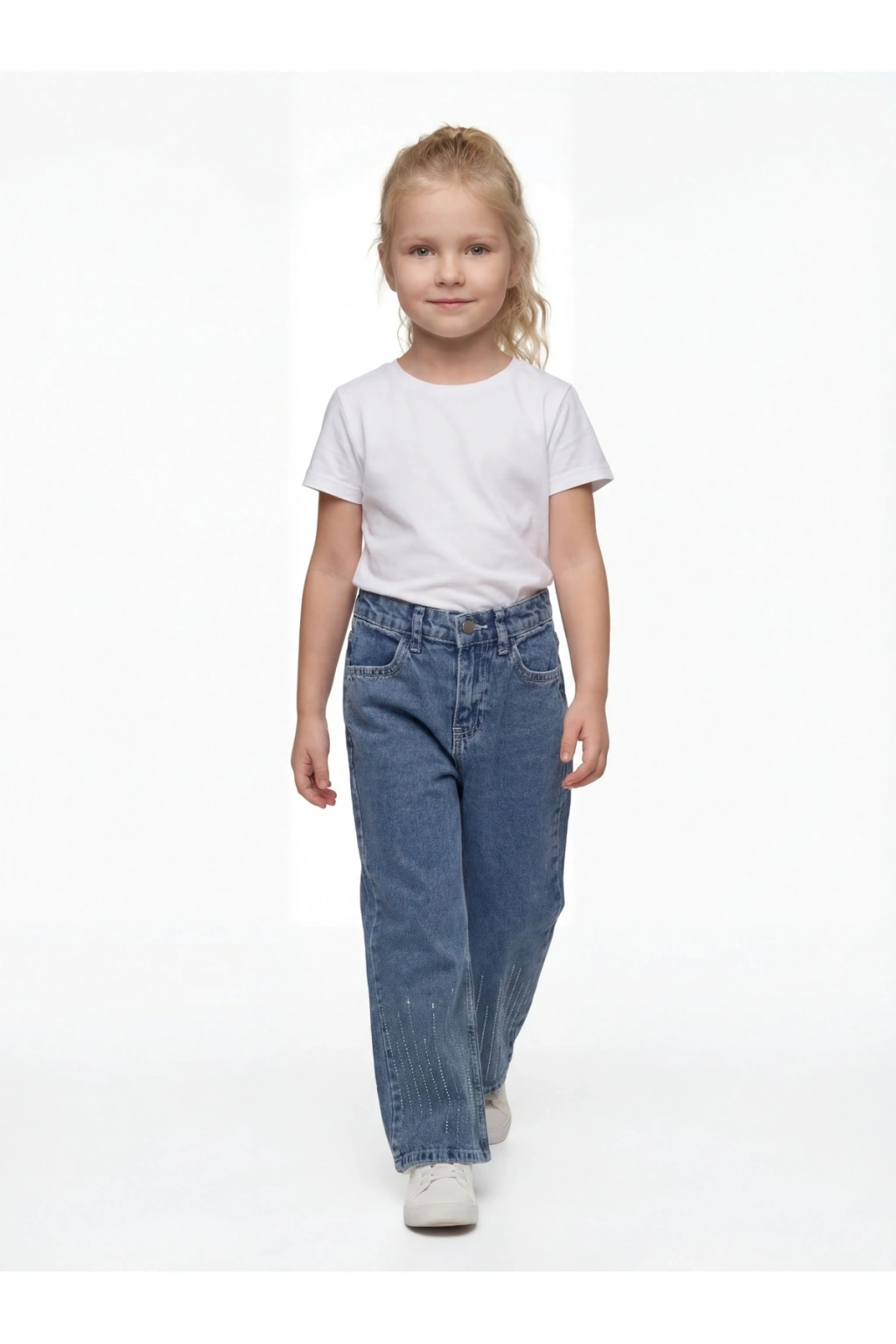 KIZ ÇOCUK PAÇALARI TAŞLI MAVİ KOT PANTOLON (JEANS-DENİM)-BAYRAMLIK