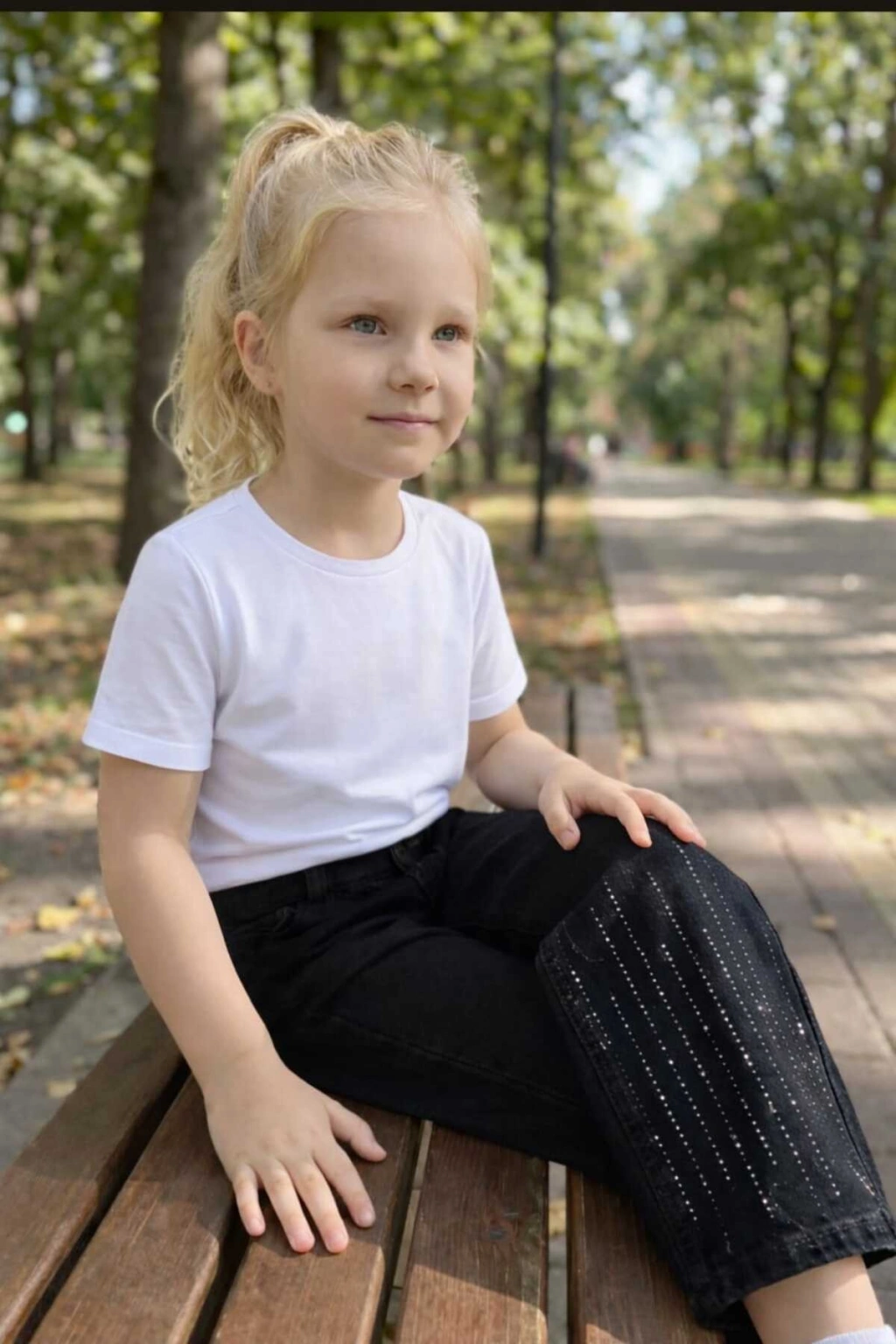 KIZ ÇOCUK PAÇALARI TAŞLI SİYAH KOT PANTOLON (JEANS-DENİM)-BAYRAMLIK