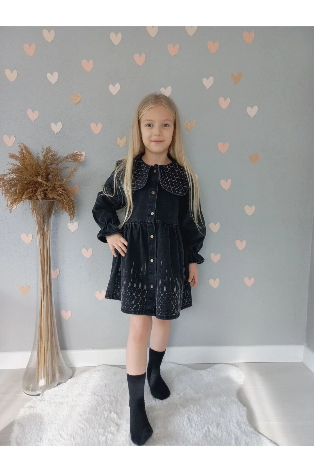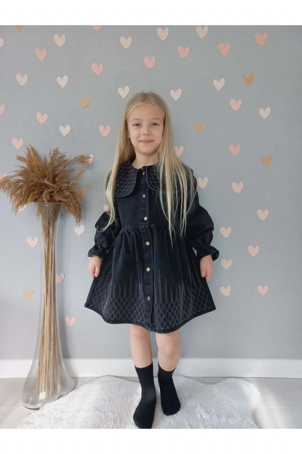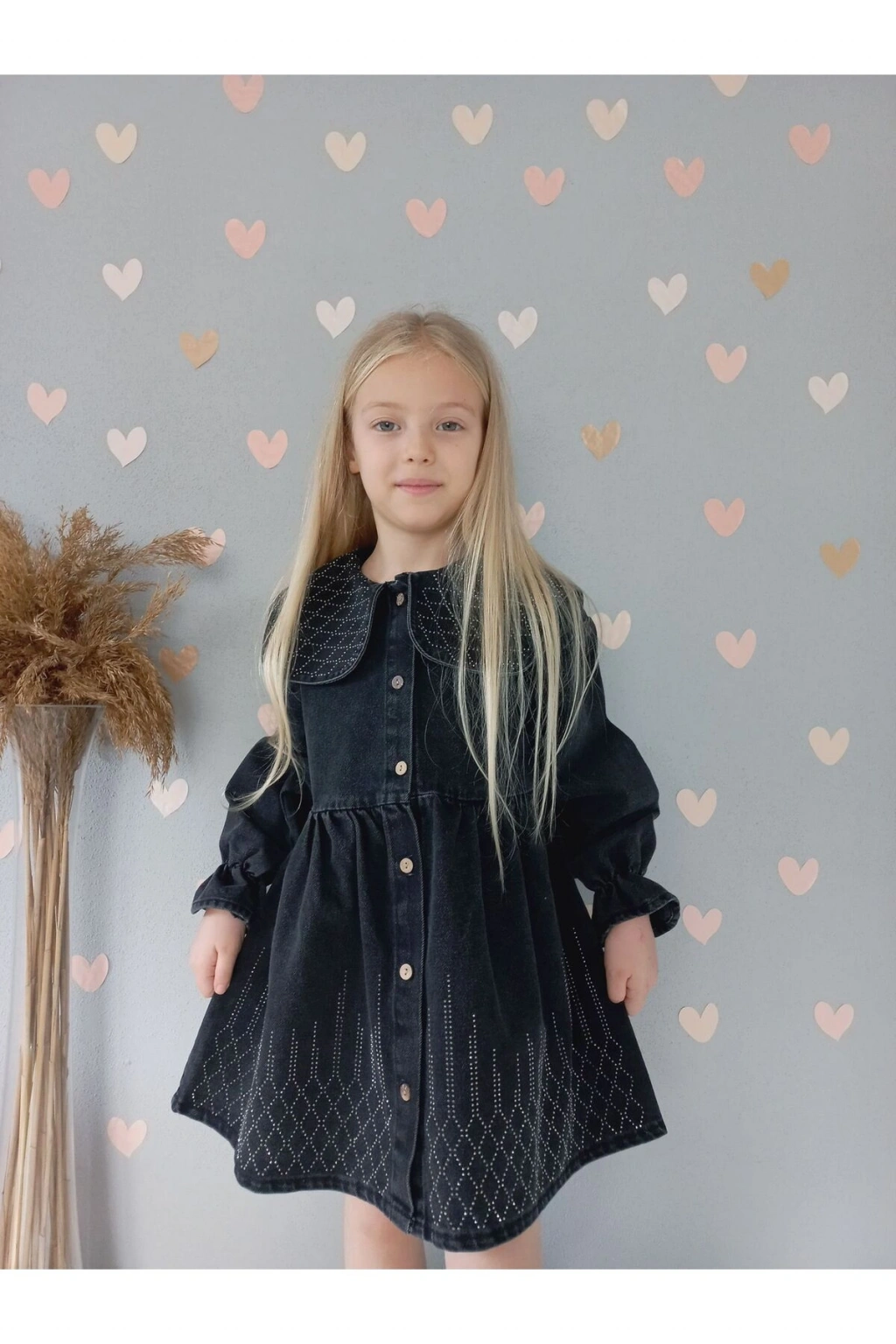 KIZ ÇOCUK TAŞ İŞLEMELİ KOT/JEANS ELBİSE-BAYRAMLIK