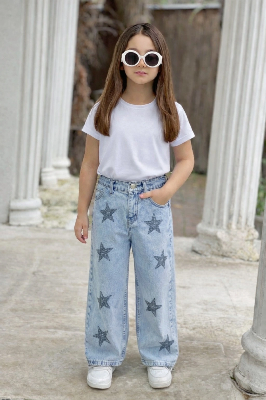 KIZ ÇOCUK TAŞLI YILDIZLI KOT PANTOLON (JEANS-DENİM)-BAYRAMLIK